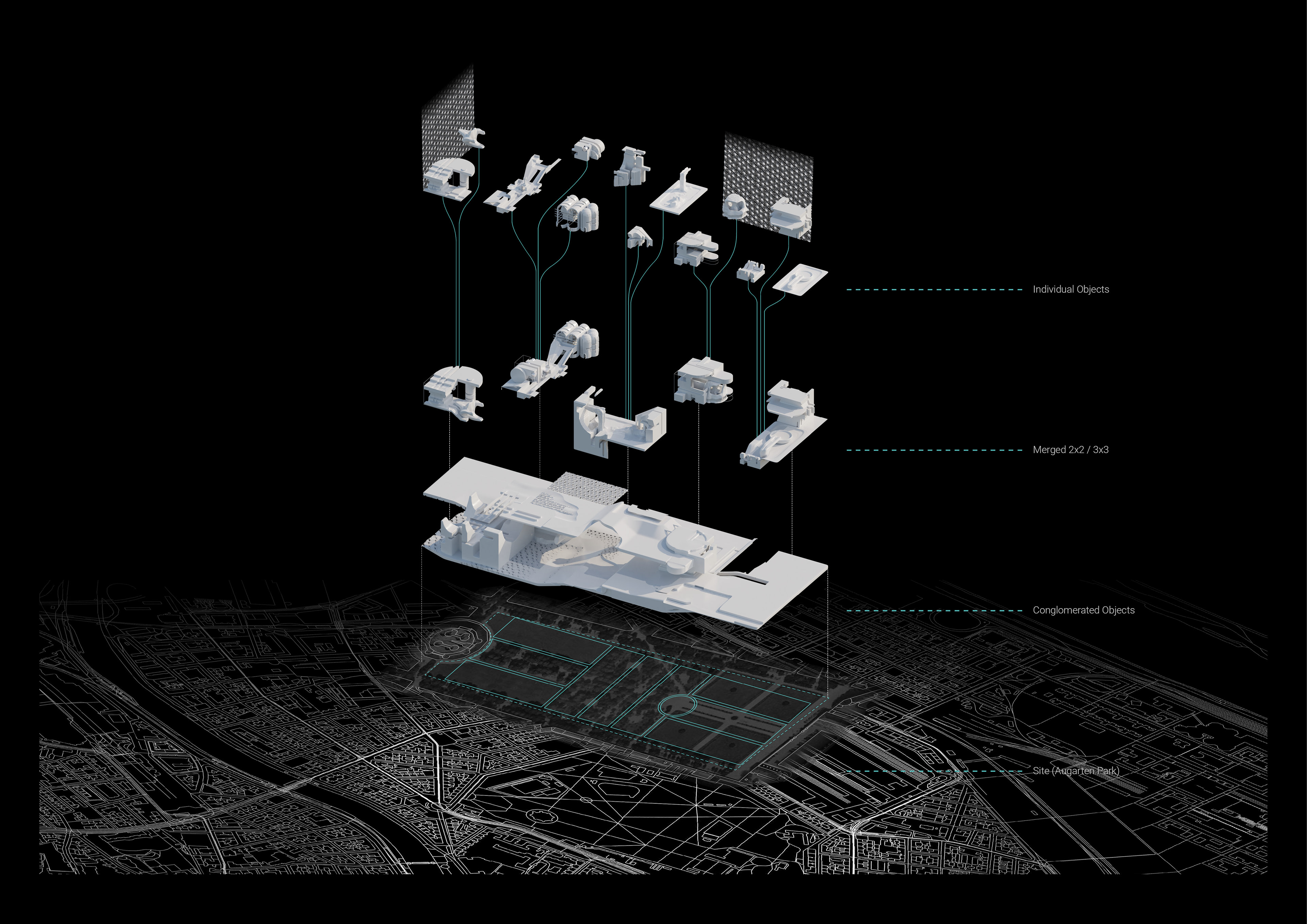 The architecture of a “Paradigm Park” has been explored this semester, rethinking the future of urban spaces and city parks beyond mere beautification. Rather than static landscapes, urban parks are envisioned as catalysts for livability, vitality, and new layers of humanism within the city fabric. This project challenges truthfulness, nature, and materiality, creating a deliberate tension between form, program, and texture. Augarten Park is conceptually unwrapped, its historical and spatial layers restructured into a new reality. Instead of a fixed entity, the park is reimagined as an allusive composition, where diverse elements — from different times and realms — merge into a coherent whole. Through this synthesis, the park and its landscape are transformed into a dynamic continuum where memory, history, and contemporary interventions converge. The result is not a mere preservation of the past but an active reconfiguration of spatial narratives, shaping an evolving urban experience.